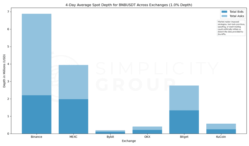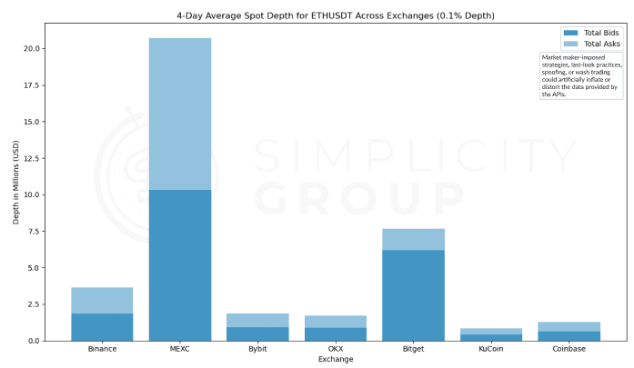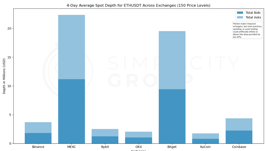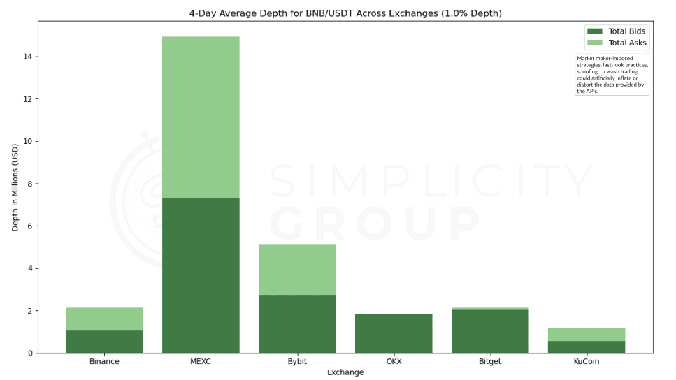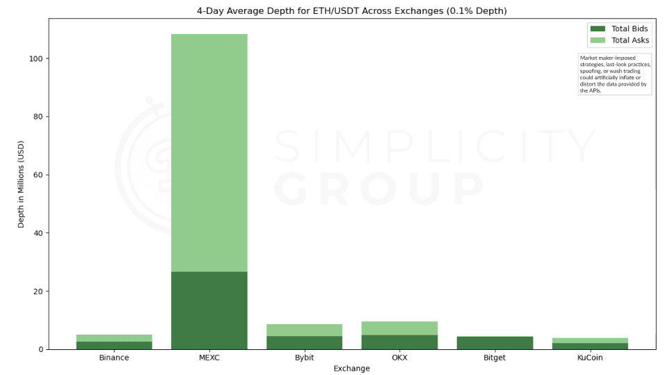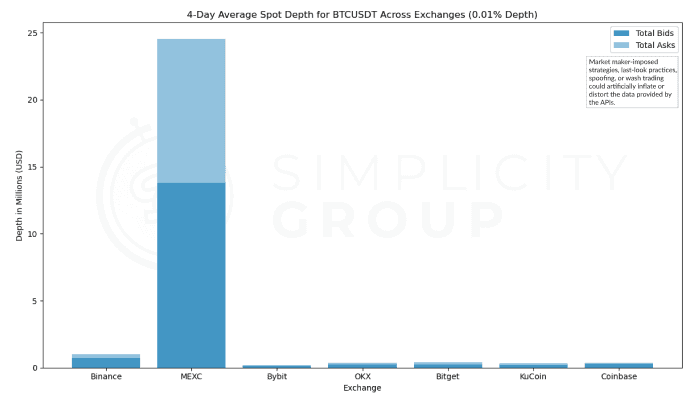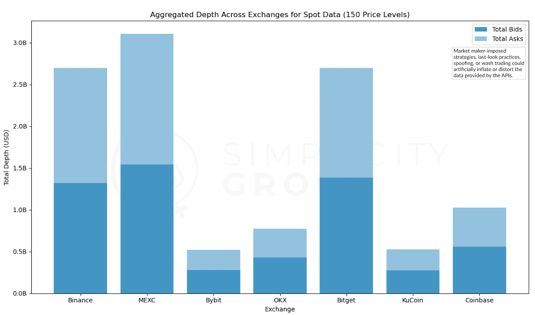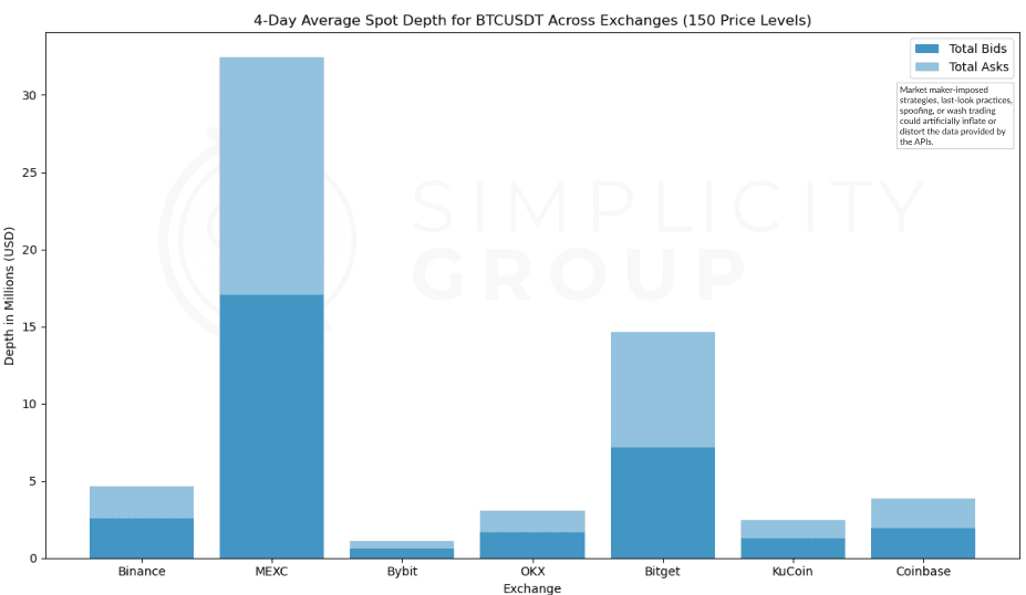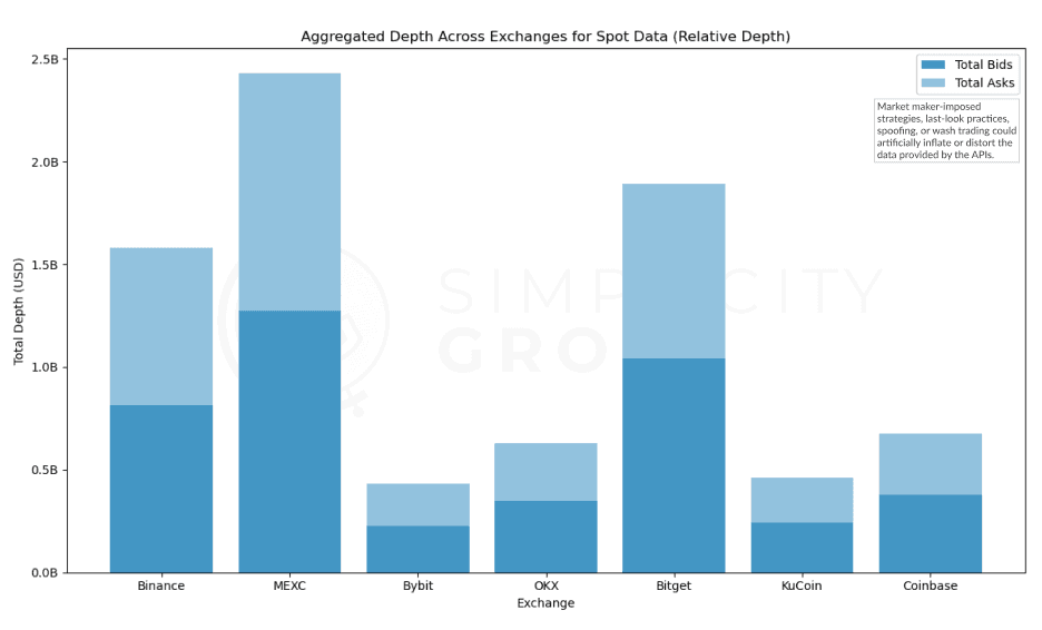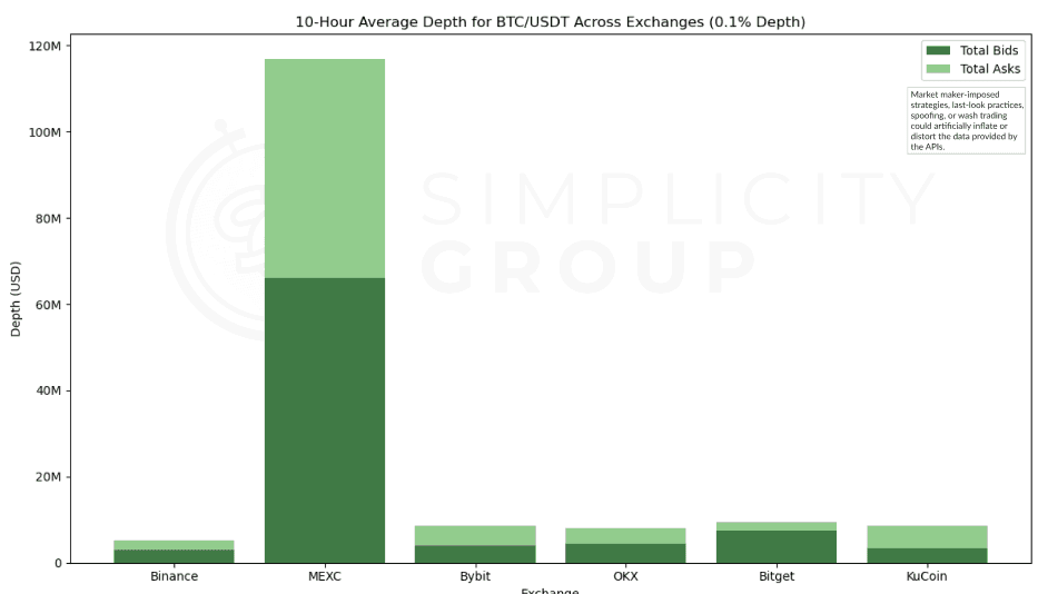 Therefore, while MEXC’s standout depth may showcase liquidity conditions made specifically for trading experience, the more modest depths across other exchanges may represent the broader market dynamics more accurately.