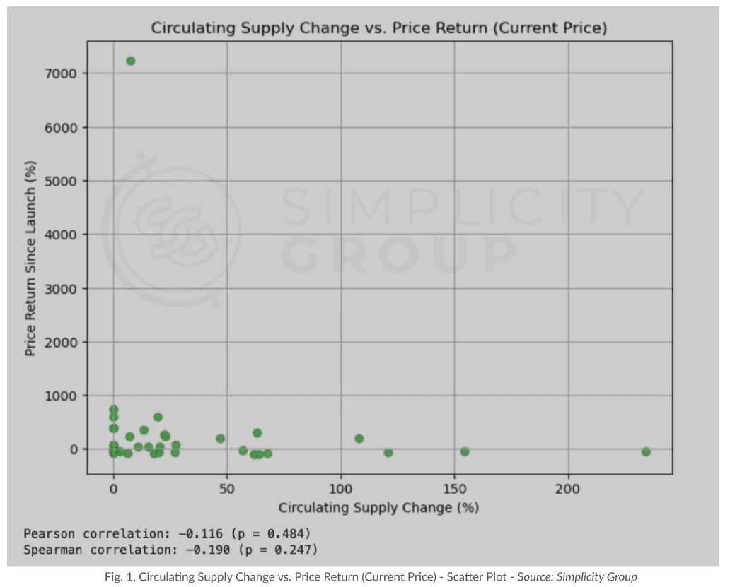 Hypothesis 1: Circulating Supply Change vs. Price Performance
