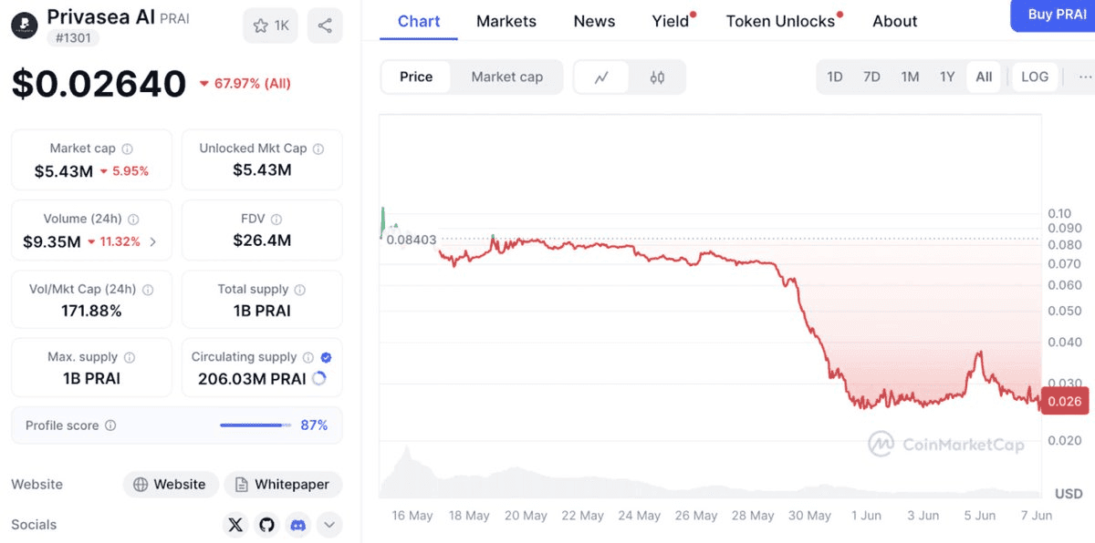 Take Privasea for example. Its all-time high return on investment was over 10x, yet the token is down more than sixty percent from launch. This happened because Binance Alpha listed tokens at a $10M valuation, while the official launch valuation was $80M. Early Binance Alpha participants won, but retail investors, VCs, and the community lost out.