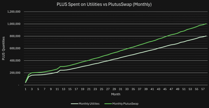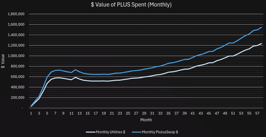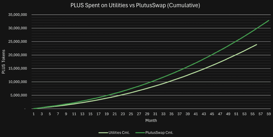 Users are spending PLUS on Utilities and PlutusSwap at rates defined above.
