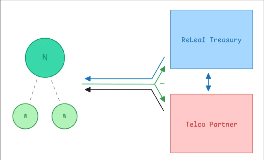 Telco gives ReLeaf fiat thus meaning ReLeaf can avoid taking their fee from users, leaving users to only pay for gas and the network fee of LEAFs that get burned.