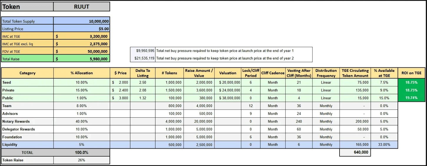 The tokenomics for the RUUT token have been carefully thought out to ensure the distributions between tranches are backed by growth projections, and to ensure alignment between all parties.